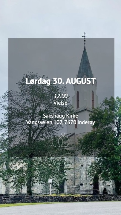 Vi gleder oss utrolig mye til denne dagen, og håper at så mange som mulig av de fine menneskene i livet vårt har mulighet til å feire sammen med oss. Fredag kveld inviterer vi til pizza på Rødbrygga i Straumen sentrum for de som ønsker å ankomme dagen før dagen! Vielsen finner sted i Sakshaug Kirke kl. 12.00, med påfølgende middag og fest på Jegtvolden Fjordhotell.